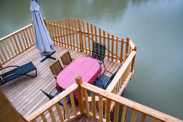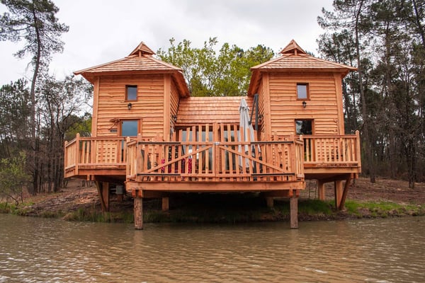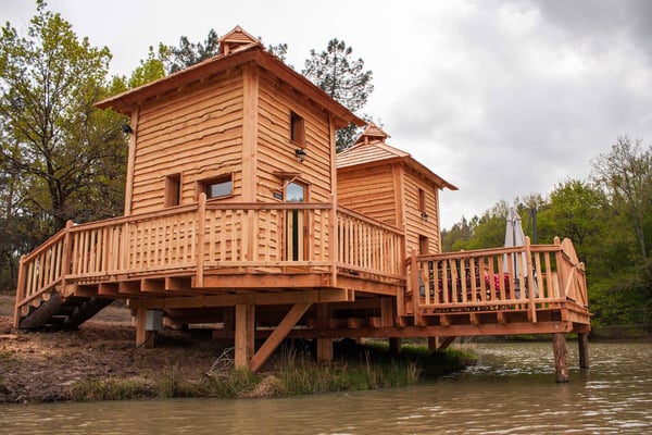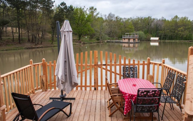 Twee unieke Water chalets staan op Camping de l'Etang de Bazange aan het visrijke meer